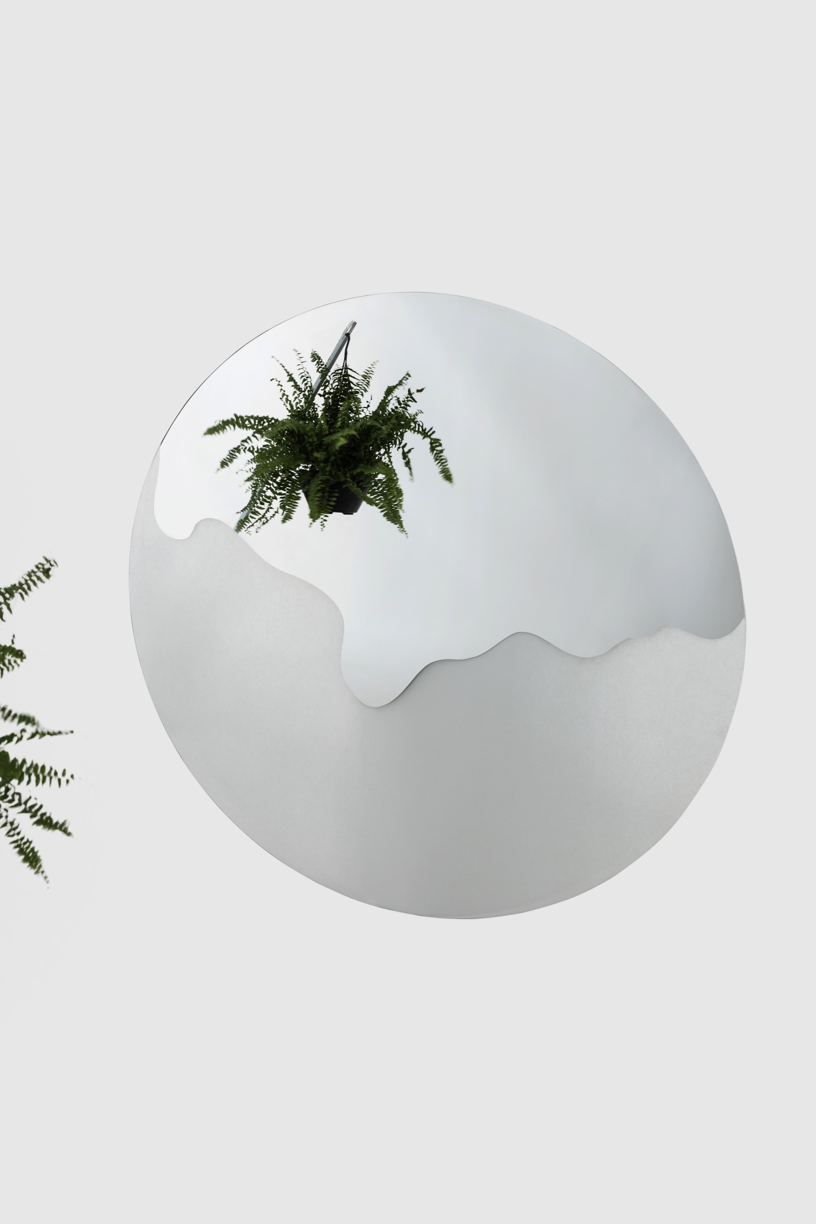 A peça propõe uma reflexão sobre a vaidade através da distorção da imagem. Um espelho côncavo que brinca com a percepção do observador.