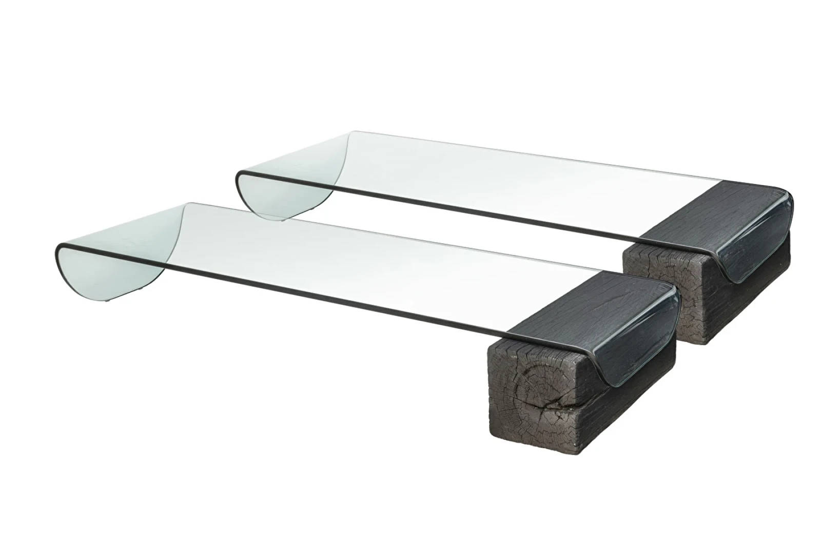 Material: Vidro incolor de 10mm + tora carbonizada.