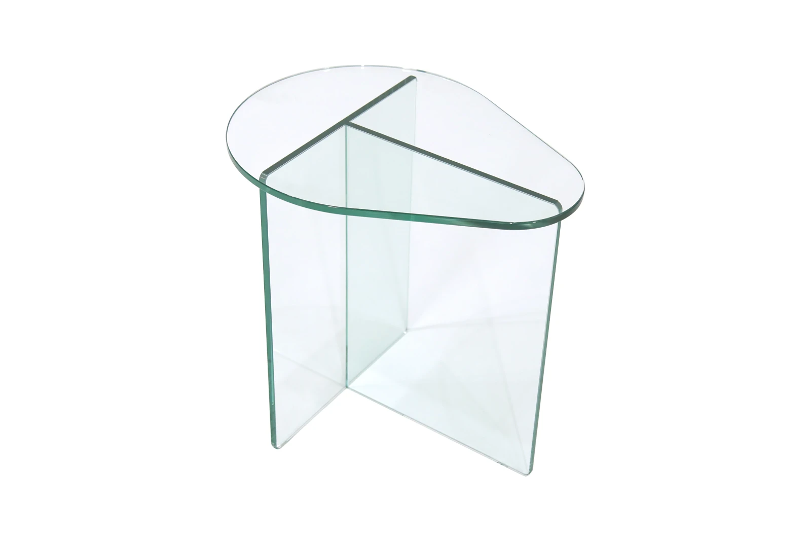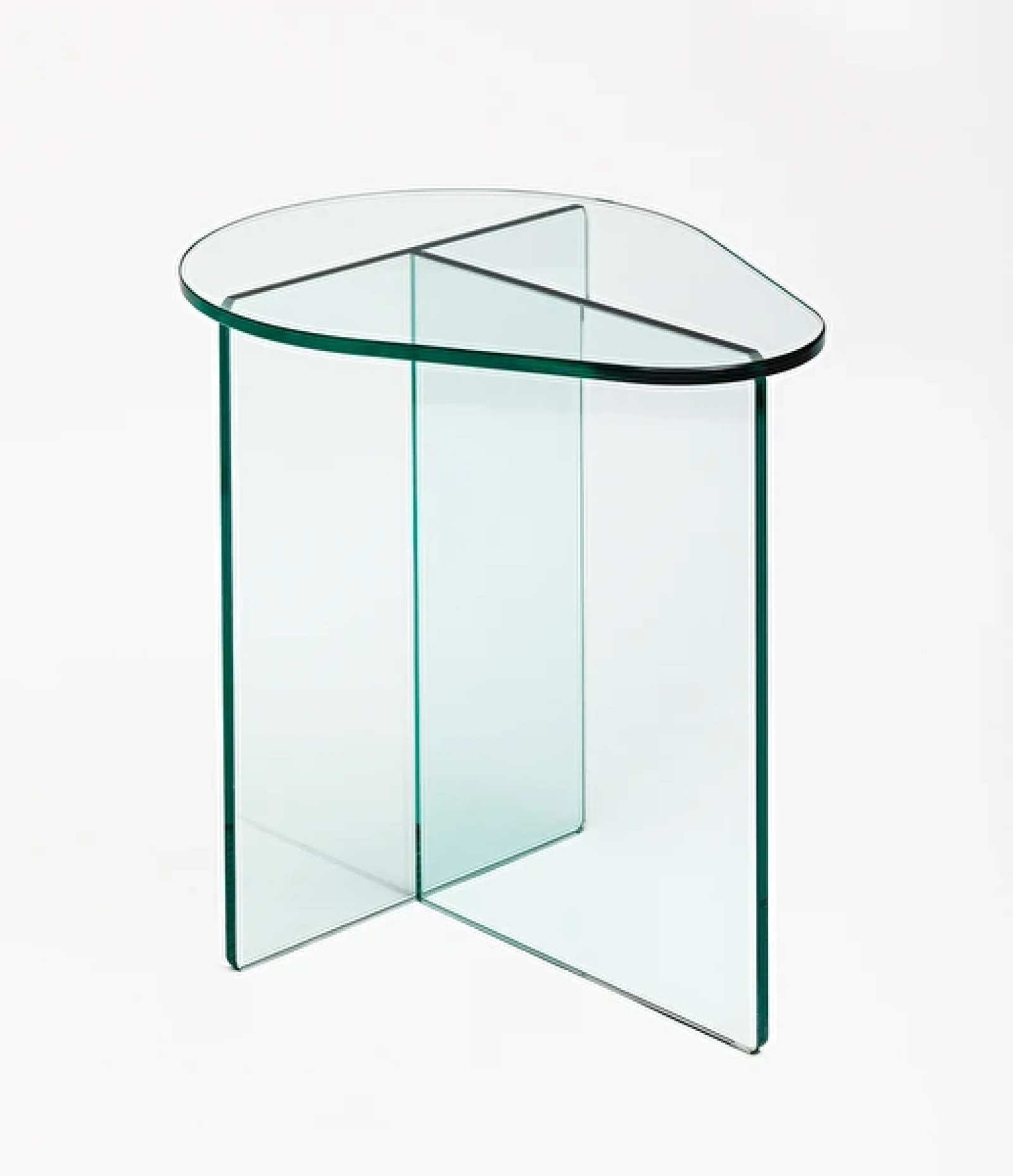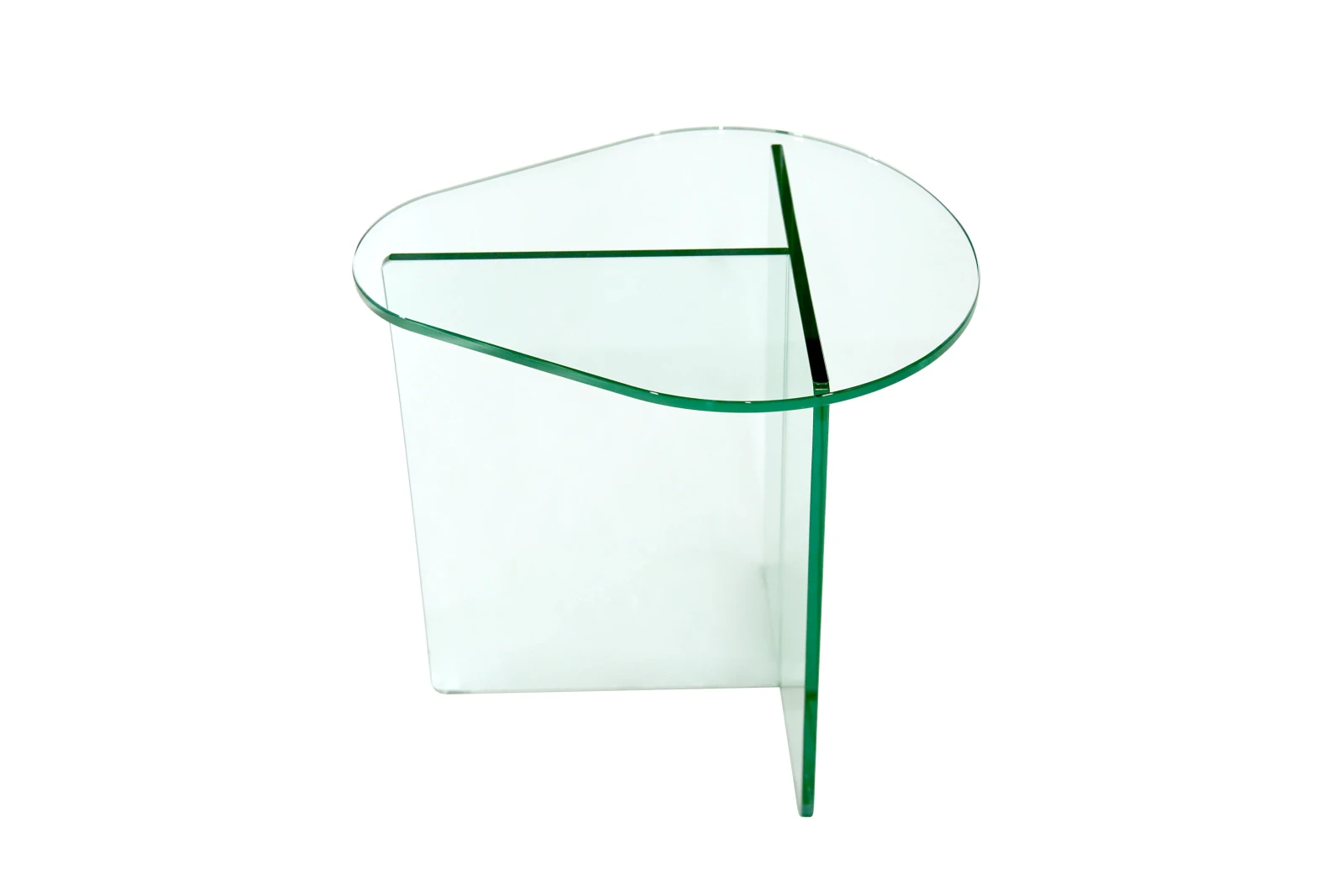 Com os tampos de círculos esticados em forma de gota e com variantes dimensões, a linha Gota apresenta uma grande simplicidade de estrutura para todas as versões da linha (mesa de centro, mesa lateral e banco)”. Zanini de Zanine. Cristal incolor 12mm temperado