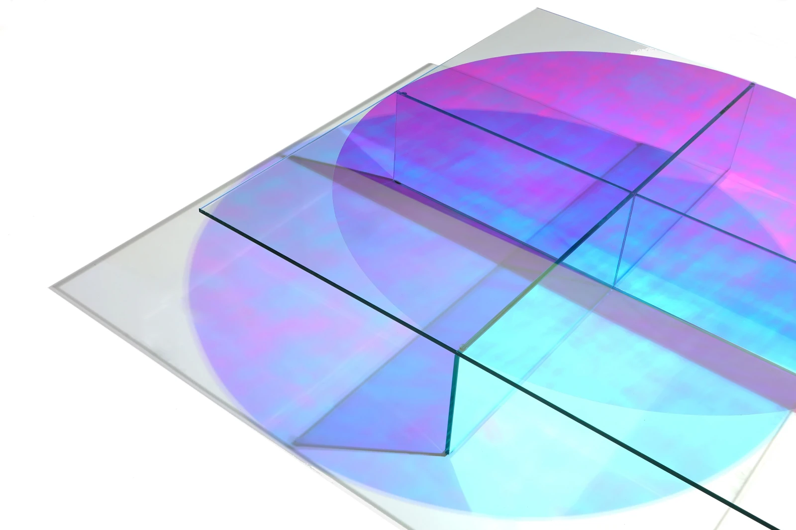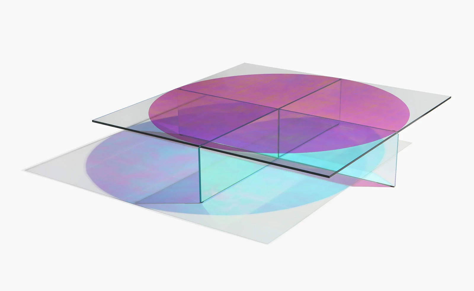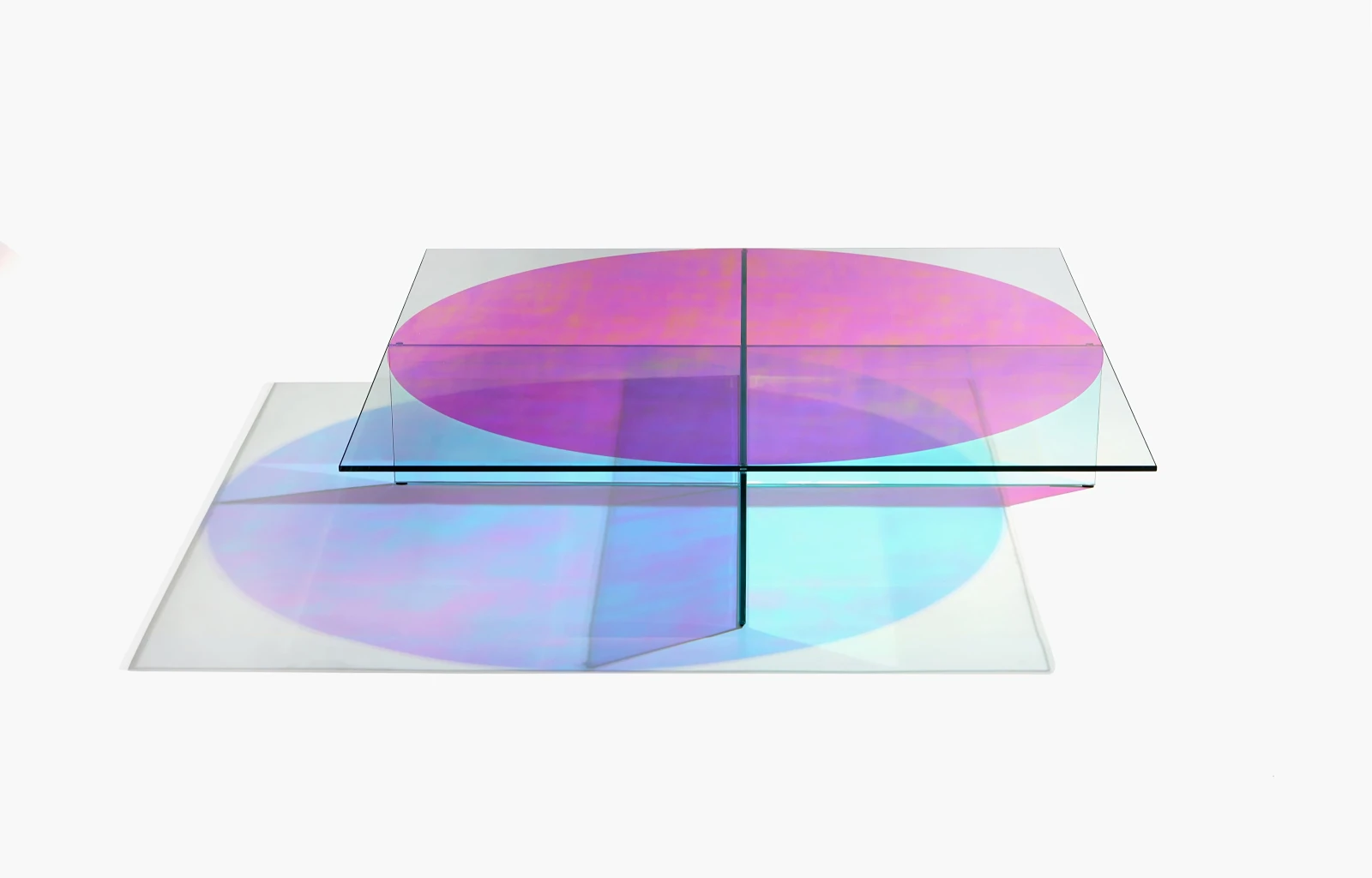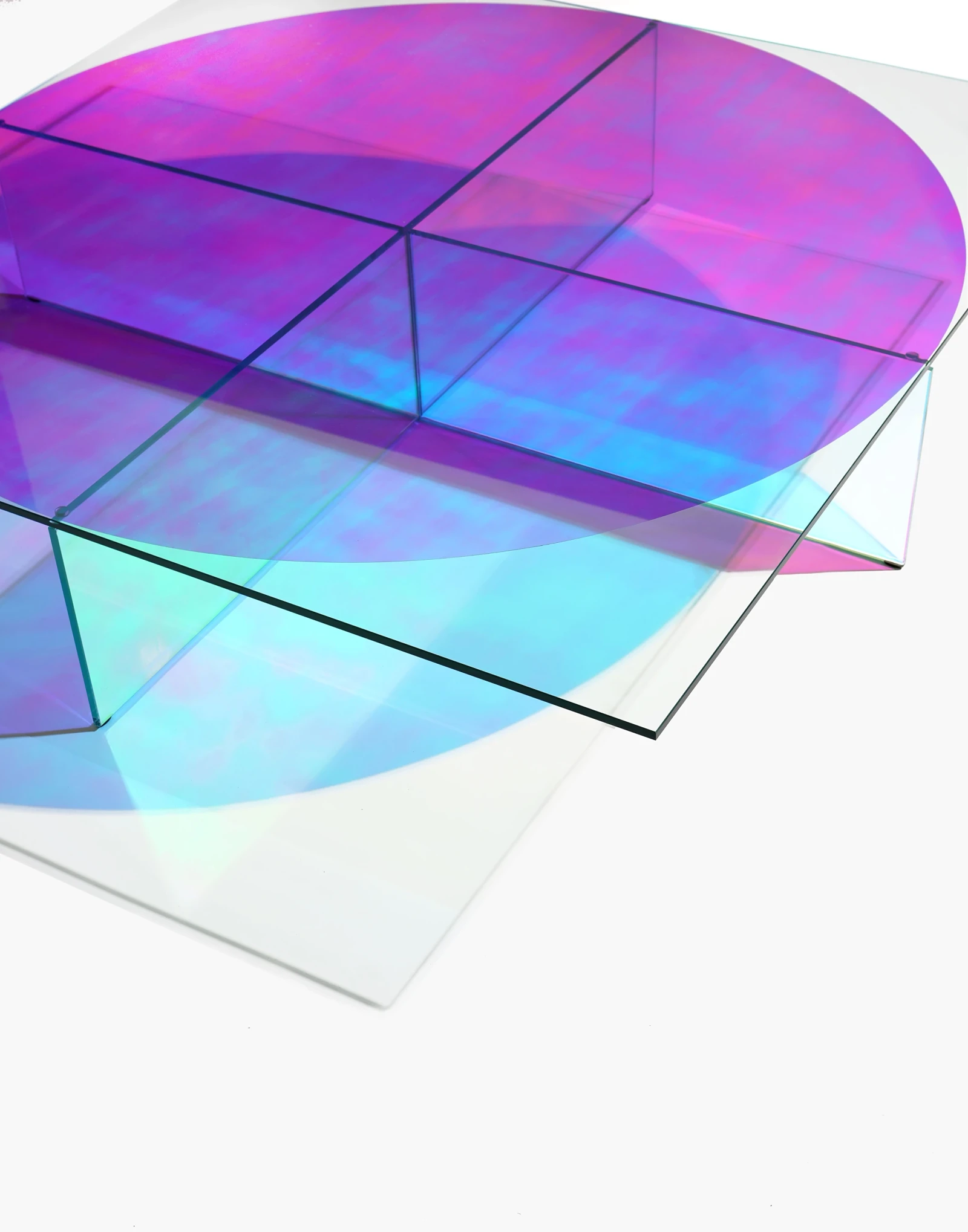 Com bases em diferentes tons de vidro e angulações, esta peça proporciona um efeito óptico que brinca com a percepção do olhar, explorando um design de linhas retas e marcantes.